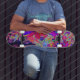 Skateboard Crimson psicodélico retro y flores silvestres mage