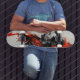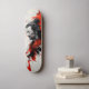 "Crimson Samurai", muestra una dramática imagen asistida por IA de un guerrero samurai. La obra es una fusión de escalas de grises y salpicaduras de crímenes, dando la impresión de una figura gastada en la batalla. La expresión del sujeto es contemplativa y feroz, con el pelo atado hacia atrás. Los acentos rojos evocan la intensidad del espíritu de un guerrero, mientras que el marcado contraste con el fondo blanco intensifica el impacto visual. Este diseño, producto de la artesanía digital, combina imágenes tradicionales samurái con abstracción contemporánea, creando una estética potente y evocadora para el patinador moderno.
