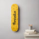 Cubierta amarilla conocida de encargo del monopatín del queso suizo. Diseño de madera fresco del tablero del patín para los muchachos y los chicas. Idea del regalo de cumpleaños de la diversión para los niños. Personalice con nombre o el monograma de encargo. La idea divertida del regalo de cumpleaños para el hijo, el nieto, la hija, la hermana, el hermano, los niños de los amigos etc. cepillan la plantilla de la tipografía de la escritura.