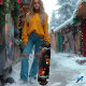 Skateboard Cubierta de esquí abstracta vibrante con neón y se