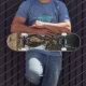 Cubierta del patín que ofrece arte de la cubierta de vaqueros y de extranjeros.