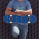 Este diseño de skateboard fue elegido originalmente por un pariente del diseñador. Es de color azul y tiene varios tamaños para elegir.
