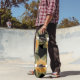 He estado pensando en crear un skateboard con flores sobre él, éste tiene folletos y un fondo negro.
