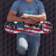 Descubra el último skateboard con un icónico diseño de la bandera estadounidense en la parte inferior. Pasee con estilo con nuestro patinador patriótico, perfecto para mostrar su orgullo americano mientras destroza las calles o el parque de patinaje. Ordena el tuyo hoy y adopta la libertad de la vía abierta con un toque de estilo estadounidense.