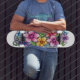 Skateboard de cubierta mariposa de flores de color