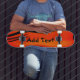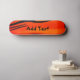 Este skateboard tiene un diseño naranja y puedes agregarle tu propio texto.