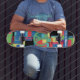 Este Skateboard multicolor con el logotipo Peace Sign es perfecto para patinadores extremos o para aquellos a los que les guste el transporte colorido.