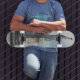 Skateboard de Manhattan NYC con Estatua de la Libe