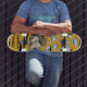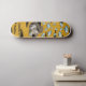 Monte hacia fuera en los diamantes para el monopatín del invierno. Un fondo negro y amarillo de pintura de aerosol. Con los diamantes lloviendo abajo en nuestra ardilla inventiva.