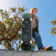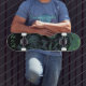 El malvado cráneo de Samurai de Japón con patines de barba dibujados a mano Skateboard, se ve muy feo y enojado