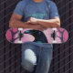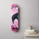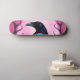 Skateboard Dibujo de un cuervo sobre fondo rosado neón