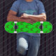 Un grupo desgarrador de dinosaurios verdes desenfrenados corren a través de este patinaje.
