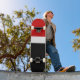 Diseño de fondo moderno en negrita rojo, blanco delgado y negro negrita estilo bloque de color