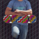 Skateboard Diseño negro de zigzag Chevron multicolor