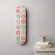 Este lindo diseño de patrón de donut y rociadores tiene varios sabores diferentes. Hay glaseado rosado con remolinos, glaseado azul y rosa con rociadores, e incluso un chip de chocolate de vainilla. Todo en un fondo de avena de color para equilibrar lo dulce. ¡Sí!