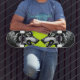 Un diseño digital de dos lobos hechos en blanco, negro y verde lima.