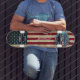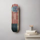 El Patinaje Dragónico Norteamericano Personalizado se trata de divertirse, y hay algo para todos en nuestra gama de patines. ¡Una magnífica patineta garantiza una sonrisa! ... Muestra tu orgullo americano o da un regalo especial con este patinador de la bandera estadounidense en un desgastado diseño de madera. Este diseño de skateboard de la bandera de los Estados Unidos con estrellas y rayas en blanco y azul rojo. Diviértete con tu mensaje personal: patinar por las calles y por el parque de patinaje, o viajar.