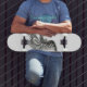 Skateboard Dragón chino, diseño blanco y negro en tatuostyl
