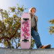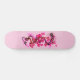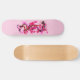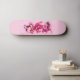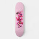 un diseño decorativo de un dragón rosa, lagarto o serpiente con flores rosas que crecen de una rama arbórea en un patinaje de color rosa ligero.