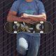 Skateboard Dragoniscos de Steampunk sobre fondo rayado marrón