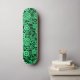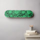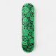 Un skateboard con interesante y diverso diseño abstracto que consiste en varias formas circulares en diferentes estilos conectados por líneas delgadas como una red o ecosistema.
