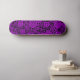 Un skateboard con interesante y diverso diseño abstracto que consiste en varias formas circulares en diferentes estilos conectados por líneas delgadas como una red o ecosistema.