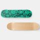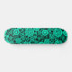 Un skateboard con interesante y diverso diseño abstracto que consiste en varias formas circulares en diferentes estilos conectados por líneas delgadas como una red o ecosistema.