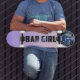Patinaje moderno y abstracto Bad Chica. Color rosa, azul violeta, gris, negro, blanco. Moderno y moderno accesorio deportivo en la calle.