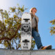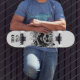 ¡Un monopatín enfermo bonito con un diseño único del grunge-cráneo y el PATÍN O MUEREN logotipo!