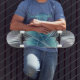 Skateboard Elegancia Flor de Arte Fractal Blanco Gris Azul
