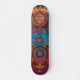 Este diseño de skateboard tiene un ilustracion colorido de una entidad mística y símbolos cósmicos.