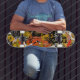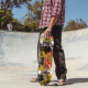 Pintura de graffiti de estilo retro de los años 80 sobre patinetas.
