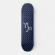Un cromo de plata como muestra del zodiaco del Capricornio en un fondo de la impresión de la textura del diseño del estilo de la fibra de carbono de los azules marinos. Un diseño mordaz urbano moderno para una gran idea de encargo del regalo de cumpleaños.