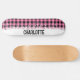 Pasee con estilo y haga una declaración con nuestra patineta personalizada de color rosa y negro! Diseñado específicamente para los adolescentes chicas que aman patinar, este patinador presenta un sorprendente patrón de tablero a cuadros medio rosados y negros que exuda confianza y actitud. En la parte inferior de la pizarra se aprecia una vibrante salpicadura de pintura blanca que añade un toque artístico al diseño general. Pero lo que realmente diferencia este patinaje es la opción de personalizarlo con tu propio nombre. Imagínese viajar por el parque de patinaje con una tabla que no sólo refleje su estilo único, sino que también lleve su nombre, convirtiéndolo realmente en uno de los tipos. Los colores vivos y el diseño llamativo seguro que le darán la vuelta a la cabeza mientras muestra sus habilidades y expresa su individualidad.
