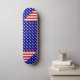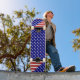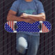 El diseño está inspirado en la bandera estadounidense, con rayas rojas y blancas, un fondo azul y estrellas blancas.