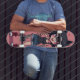 Fille tatouée, dans le style cartoon, elle a un style marqué, un peu grunge ou k pop. Le fond est rose, l'illustration prend toute la planche.