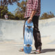 Skateboard with a design with the flag of Hyōgo Prefecture in Japan (兵庫県, Hyōgo-ken), a blue flag with a white symbol