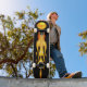 Flamante bola caliente en naranja rojo y amarillo en skateboard negro.