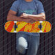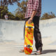 Gráficos de graffiti de estilo retro sobre una tabla de patinaje.