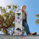 Skateboard Flor de color azul rosado púrpura elegante del paí