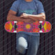 Skateboard Flor hippie psicodélica rosa morada y amarilla