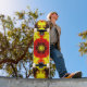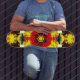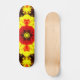 Skateboard Flor psicodélica caleidoscópica amarillo y rojo