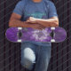 Skateboard Flor púrpura psicodélica Resumen arte fractal
