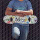 Floral con patineta de nombre con hermosas flores de jardín para chicas que pueden personalizarse con tu nombre.