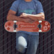 Diseño de skateboard personalizado floral vintage de los 60 y 70 con arco de arcoiris monocromático naranja simple. Con margaritas florales simples y plantillas fáciles de usar con tipografía genial y groovy personalizada. Arte original de la artista Catherine Sweetman