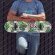 El Tropical Floral Modern Girly Personalized Skateboard cuenta con un colorido fondo floral tropical moderno con su nombre personalizado en escritura violeta moderna. Personalice editando el texto en el cuadro de texto proporcionado. Diseñado por ©Evco Studio www.zazzle.com/store/evcostudio