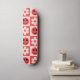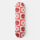 Esto son lindas flores blancas con cuadros y caras rojas felices en tableros de ajedrez. Es un lindo skateboard para chicas adolescentes