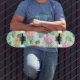 hojas de palma modernas con pintura de flores amarillas y rosas, una increíble flor de loto rosa caliente, flores amarillas y hojas de palma acuarela que crean un ambiente de vacaciones de verano en la playa, con un fondo de tonos grises foliage tropical descoloridos, sobre un fondo blanco sencillo. Un original, moderno, botánico arte natural, Ilustracion de verano moderno.