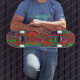 Skateboard Flores silvestres rojas y verdes psicodélicas Groo