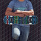 Cubierta de skateboard impresa con cuatro partes de armonía Formas alternativas translúcidas torceduras, vueltas y curvas de diseño de arte geométrico abstracto con patrones de ilustracion de arte original por la impresión TheFabricSeal en tienda a petición en Zazzle.com #ZazzleMade https://www.zazzle.com/store/thefabricseal TheFabricSeal ©️ Original. Llamando a todos ávidos patinadores - ¡y también principiantes! Crea tu siguiente patineta de primer nivel aquí en Zazzle. Ya sea que esté tomando su puente a las calles, a medio tubo de patinaje o al tren. La cubierta de patinaje de calidad profesional hecha con los mejores ingredientes. Siete capas de madera de arce USA de alta calidad duradera. Diseño artístico y diseño artístico del arte gráfico digital geométrico y ondulado, moderno y abstracto, con capas transparentes y translúcidas, en tu hogar y accesorios para vivir, decoración del hogar, declaración de moda, accesorios electrónicos modernos y tonos de regalo. Decoración armoniosa, equilibrada y armoniosa con colores azul flor de maíz, Yinmin Oregon Mas azul, azul verde, azul Picton, blanco cremoso, rojo alizarino, verde de manzana granioso y paleta de color verde lagarto de iguana en un fondo negro de chorro de ébano.